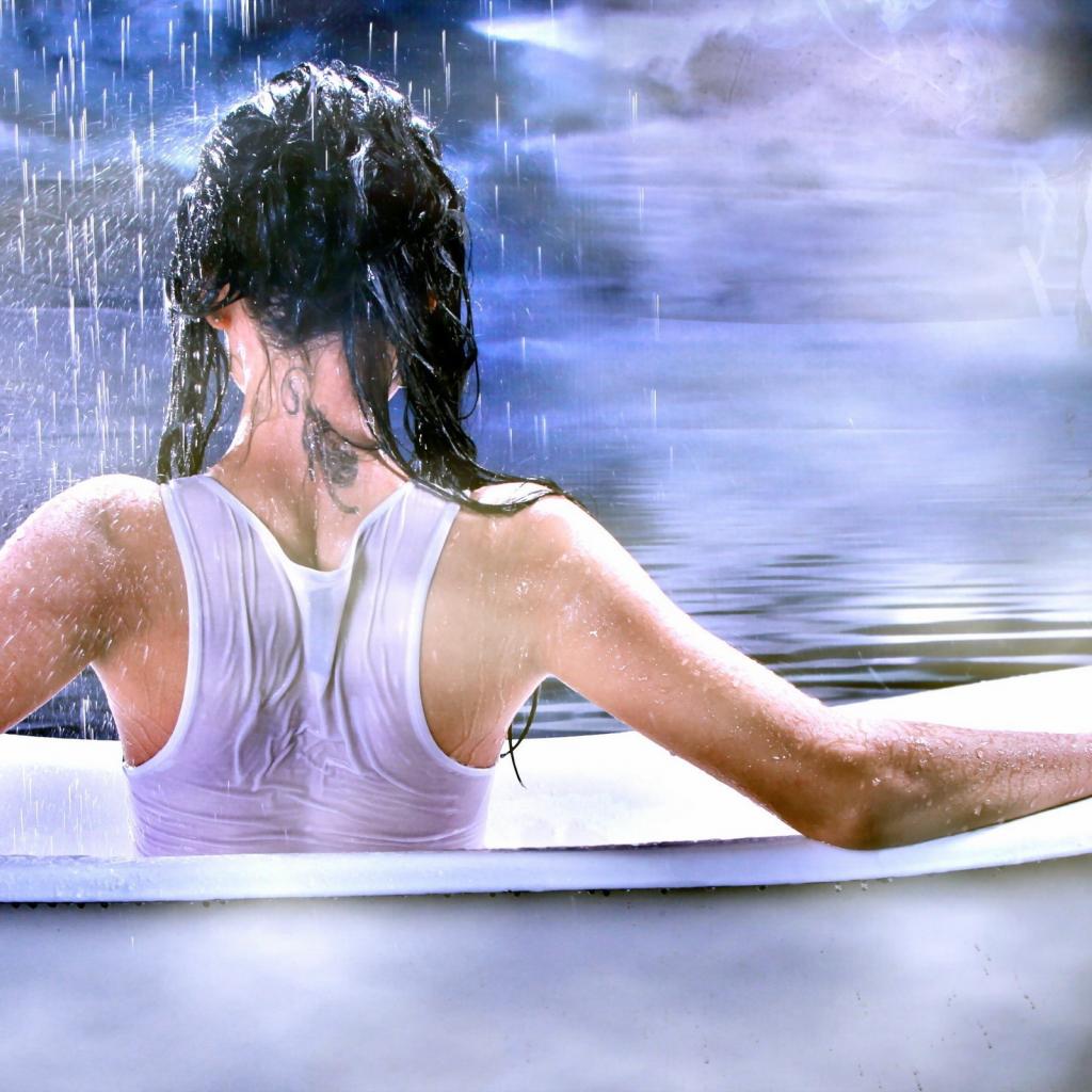 Wallpaper Girl with a tattoo on his neck sitting in the bathroom