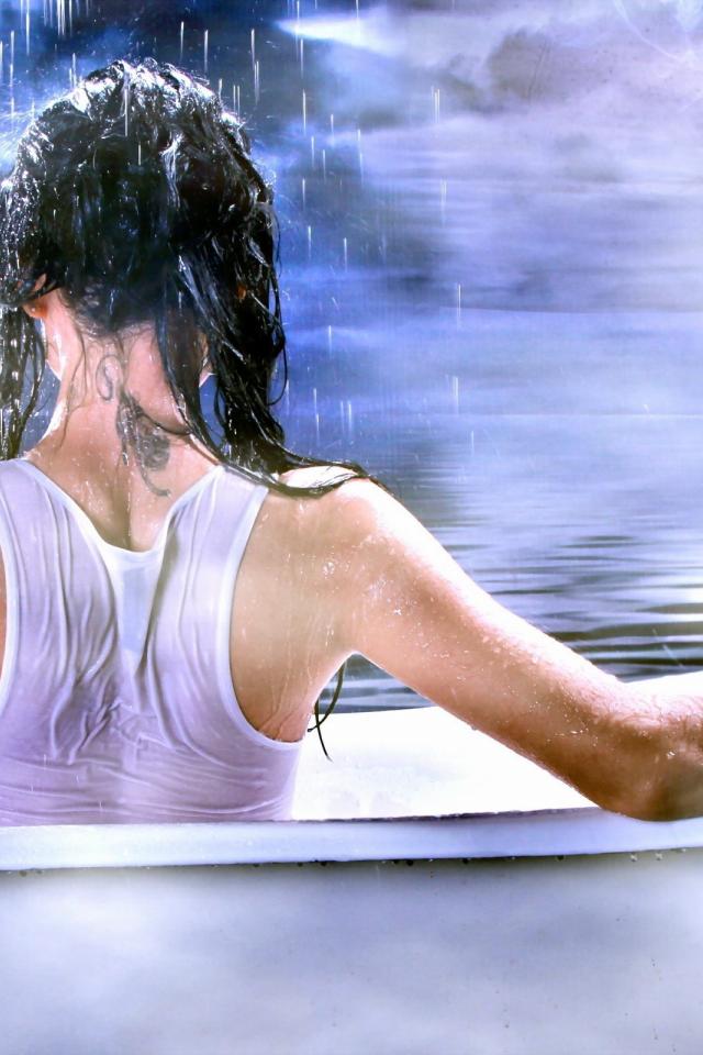 Wallpaper Girl with a tattoo on his neck sitting in the bathroom