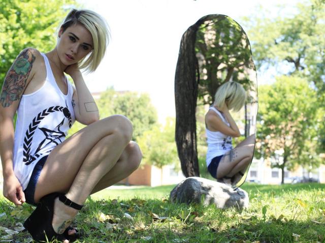 Wallpaper Girl with a tattoo on the nature of the mirror