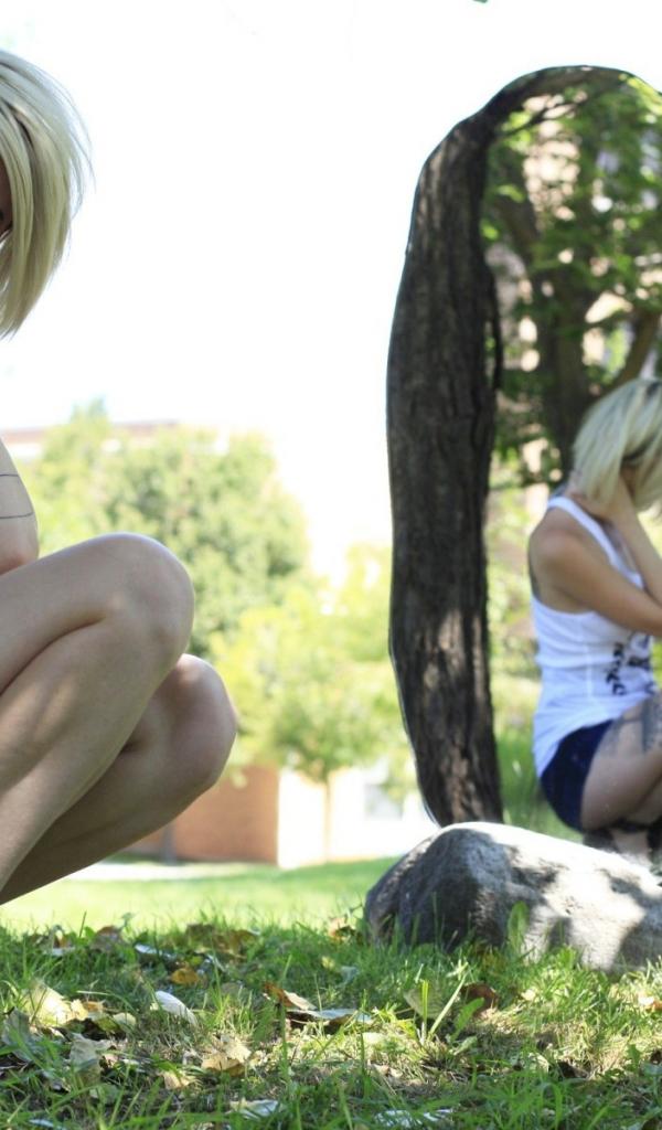 Wallpaper Girl with a tattoo on the nature of the mirror