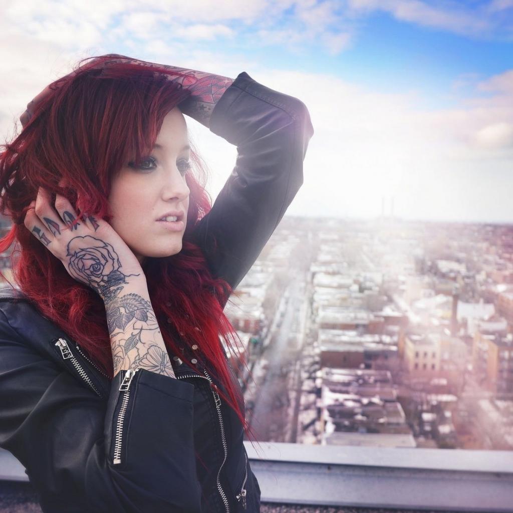 Wallpaper Tattoo rose on hand redhead girl