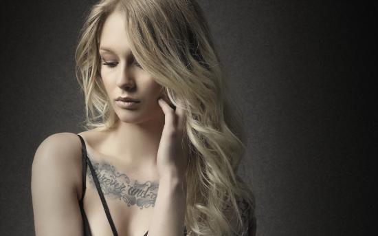 Wallpaper The inscription on his chest tattoo girl