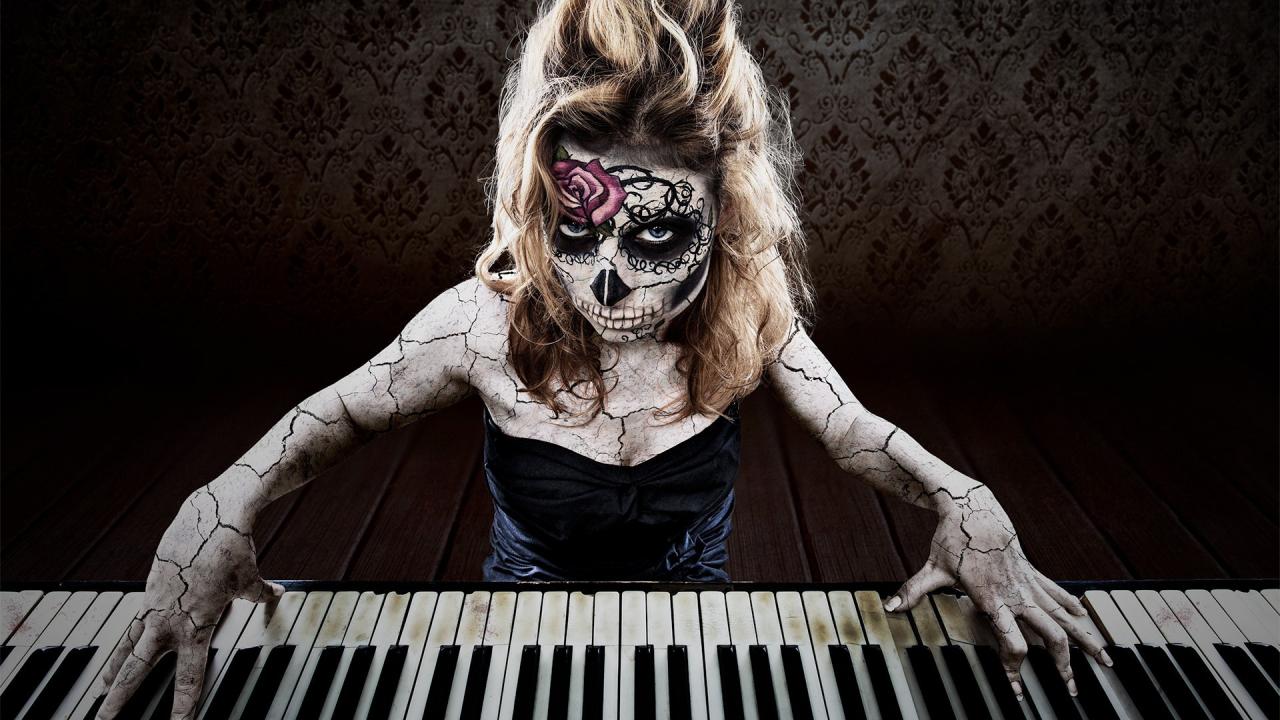 Wallpaper Tattooed girl playing the piano