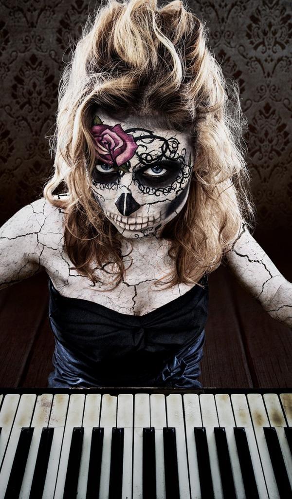 Wallpaper Tattooed girl playing the piano