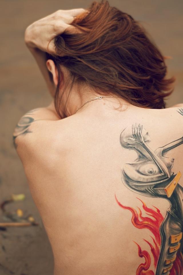 Wallpaper Figure spine tattoo on the back of the girl