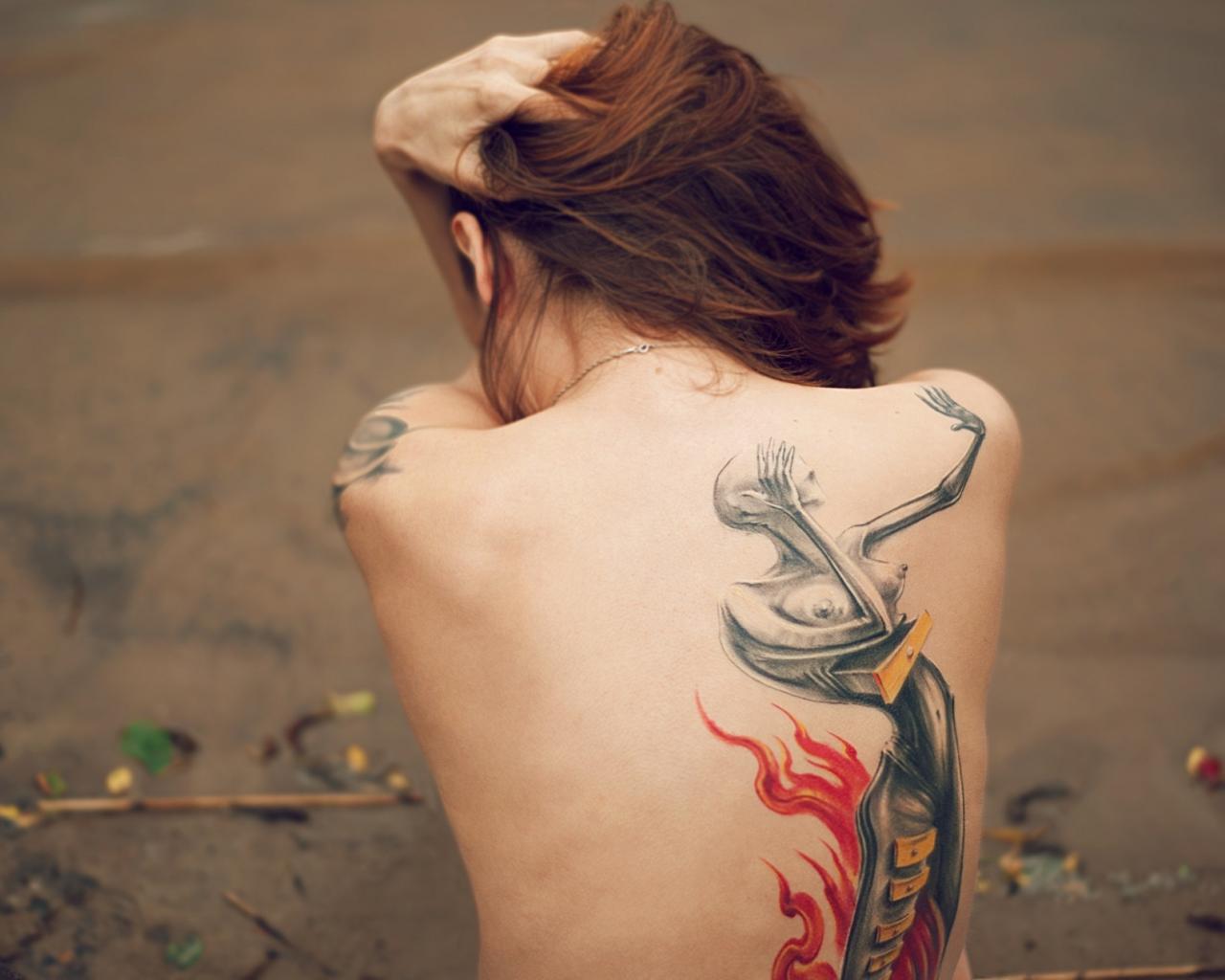 Wallpaper Figure spine tattoo on the back of the girl