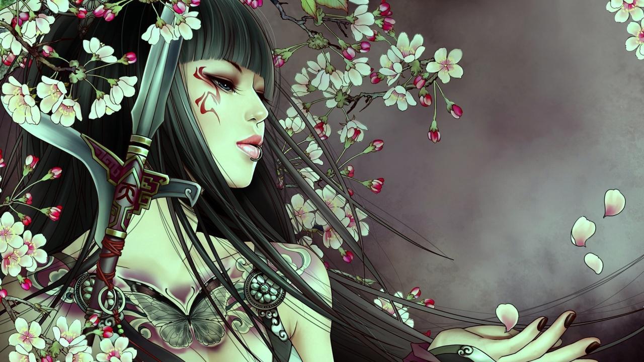Wallpaper Samurai Japanese girl