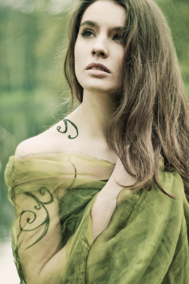 Wallpaper Girl in green with tattoo