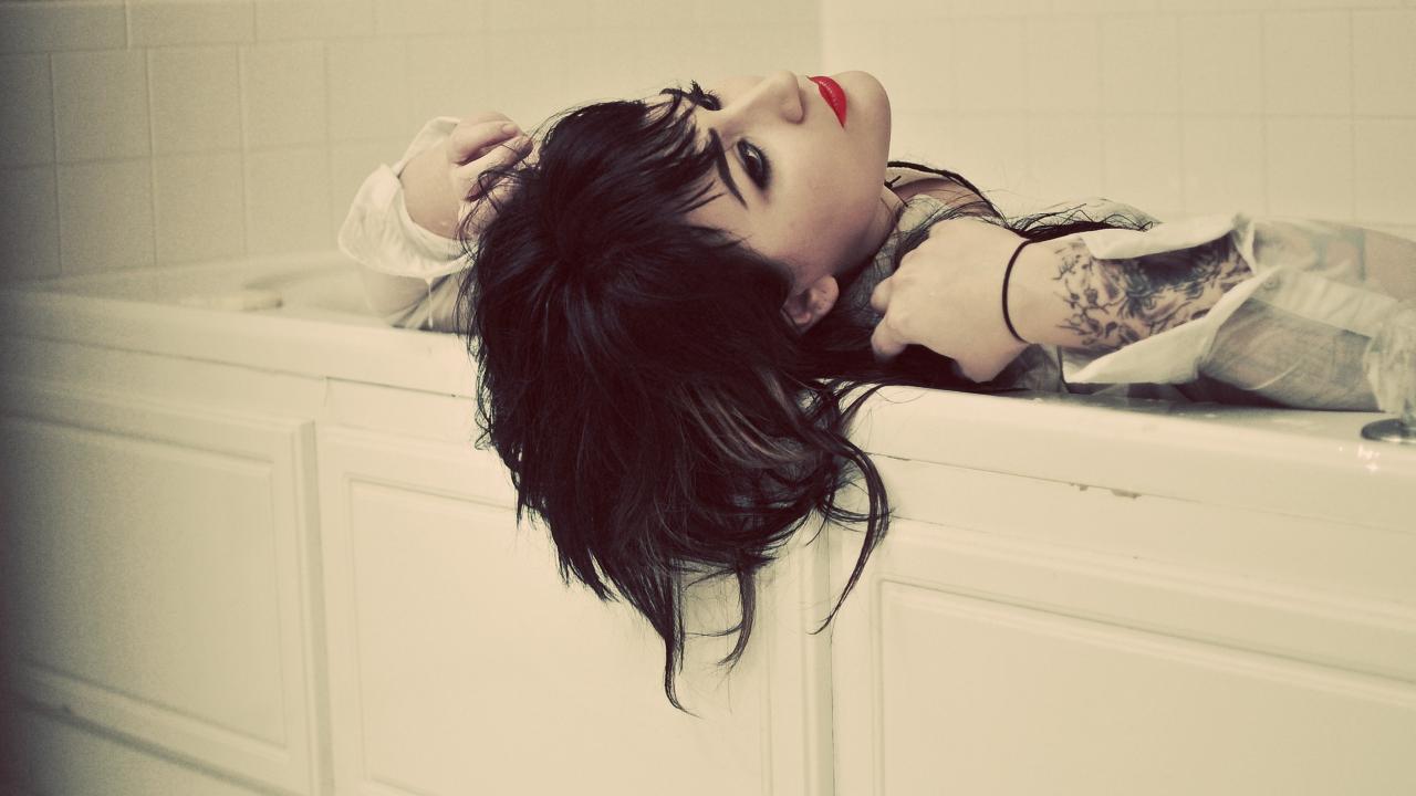 Wallpaper Girl with tattoos in the bath