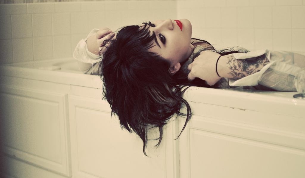 Wallpaper Girl with tattoos in the bath