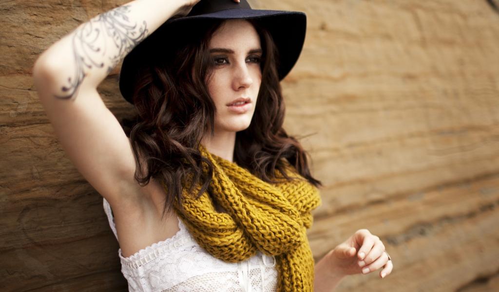 Wallpaper Brunette with tattoo