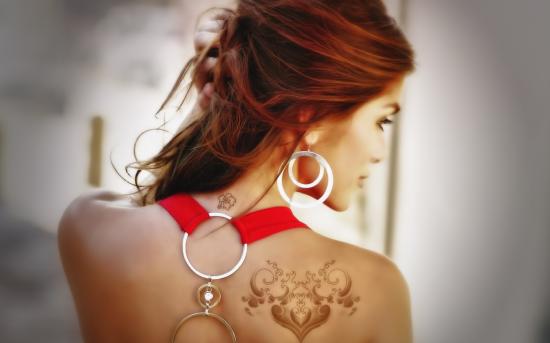 Wallpaper Girl with tattoos on his shoulder and neck