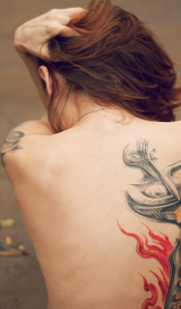 Wallpaper Beautiful tattoo on the back of a girl