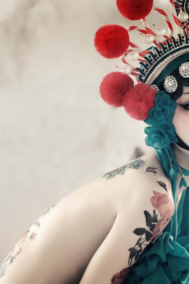 Wallpaper Japanese girl with tattoos