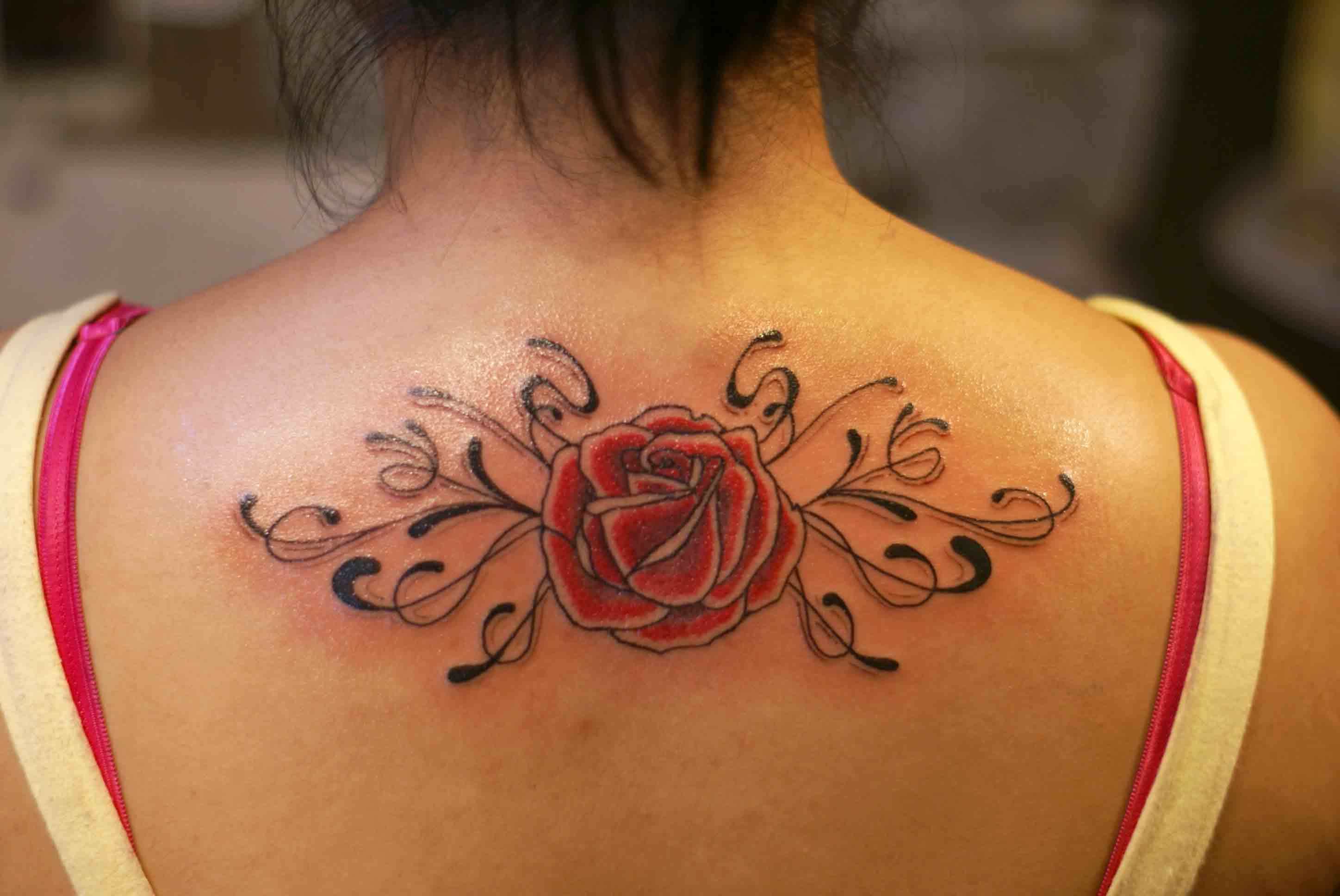 Wallpaper Rose tattoo on her back