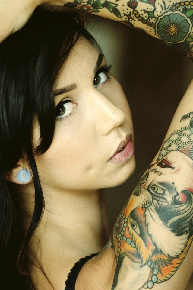 Wallpaper Haired girl with a tattoo on his arm