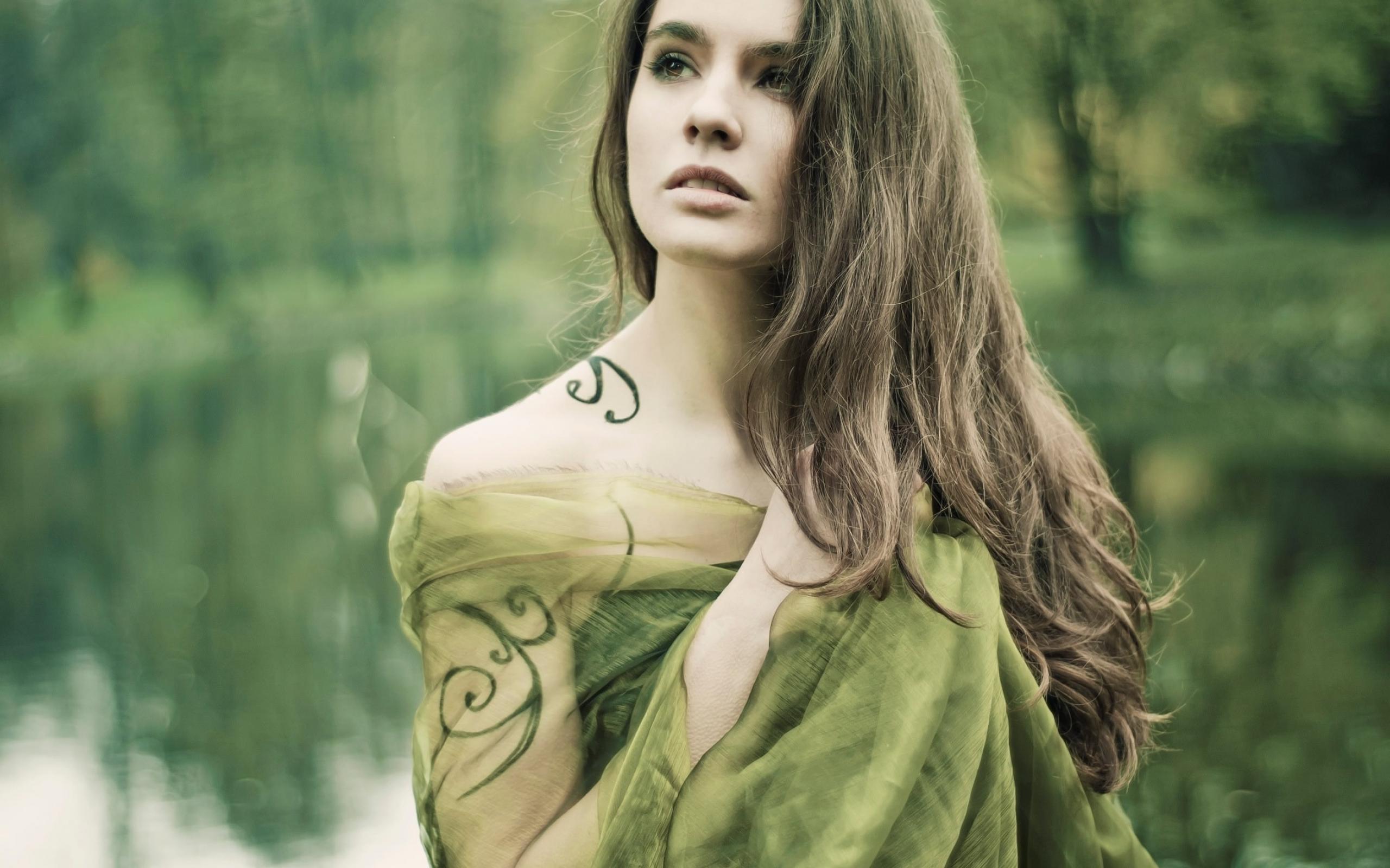 Wallpaper Girl on nature with a tattoo on his arm