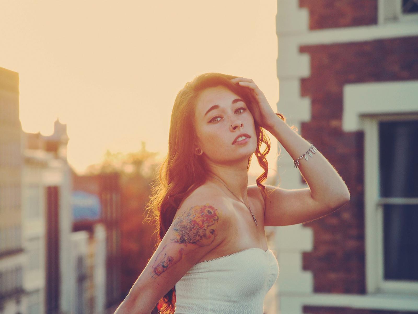 Wallpaper Girl at sunset with a tattoo on his shoulder