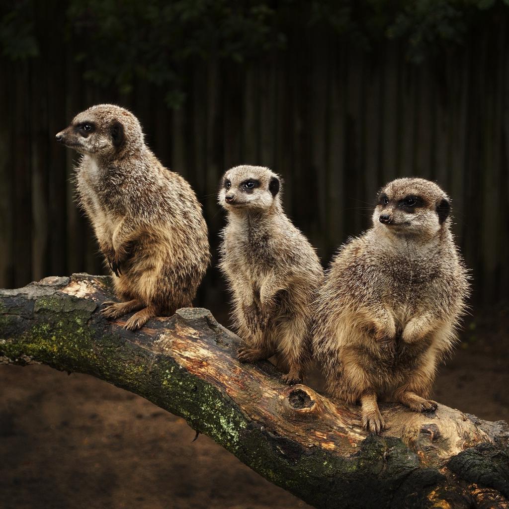 Wallpaper Three marmot on a tree trunk
