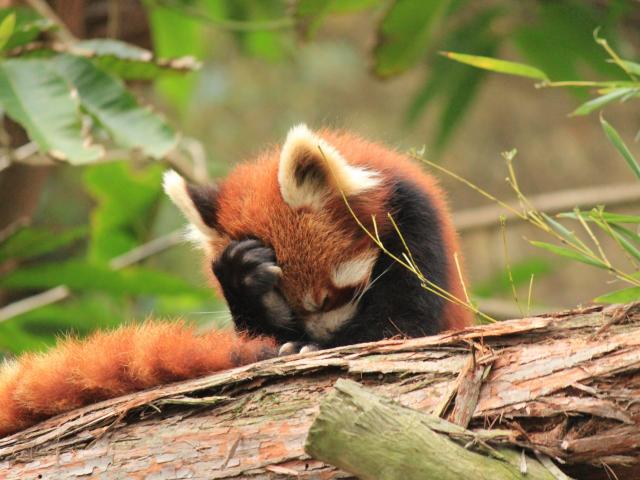 » Wallpaper Red panda put foot on his head