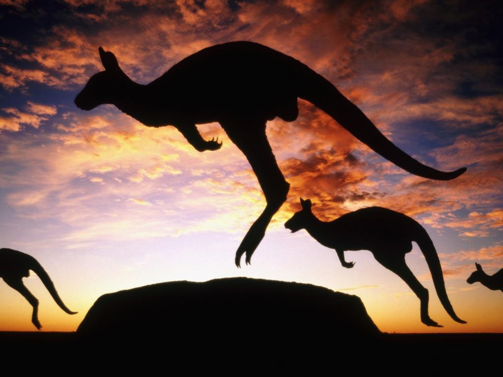 Wallpaper Kangaroo jump against the evening sky