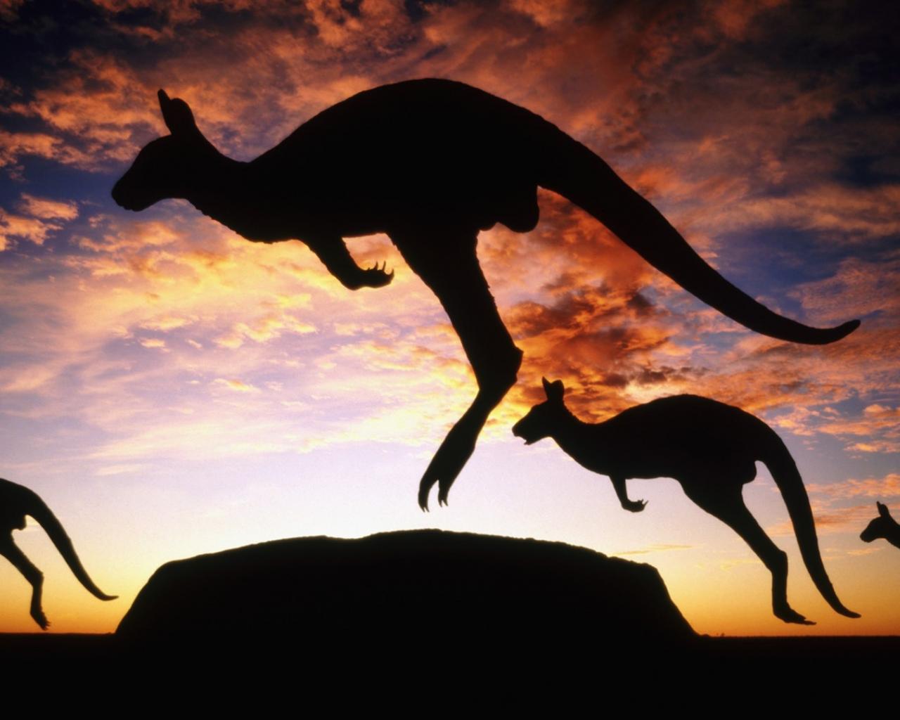 Wallpaper Kangaroo jump against the evening sky