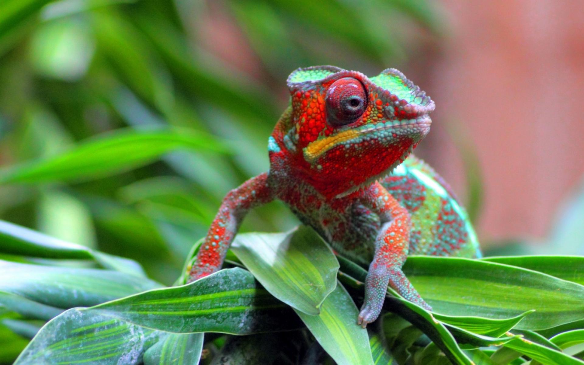 Wallpaper Chameleon on a pile of grass