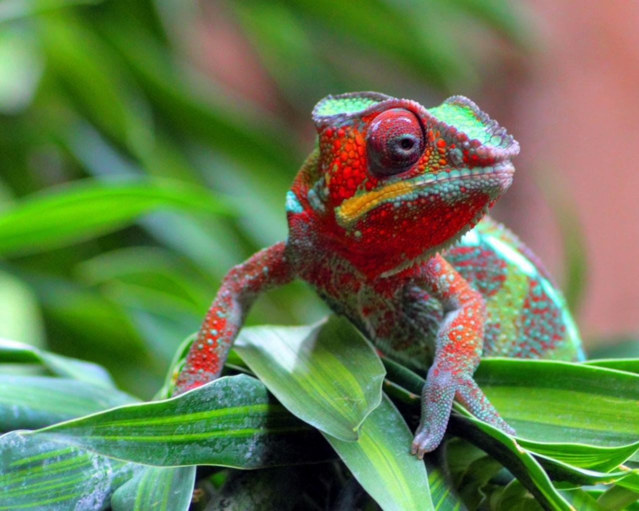 Wallpaper Chameleon on a pile of grass