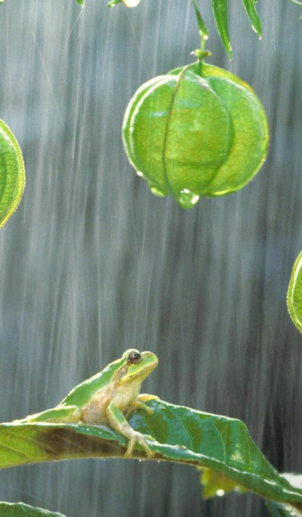 Wallpaper Frogs on the plants in the rain