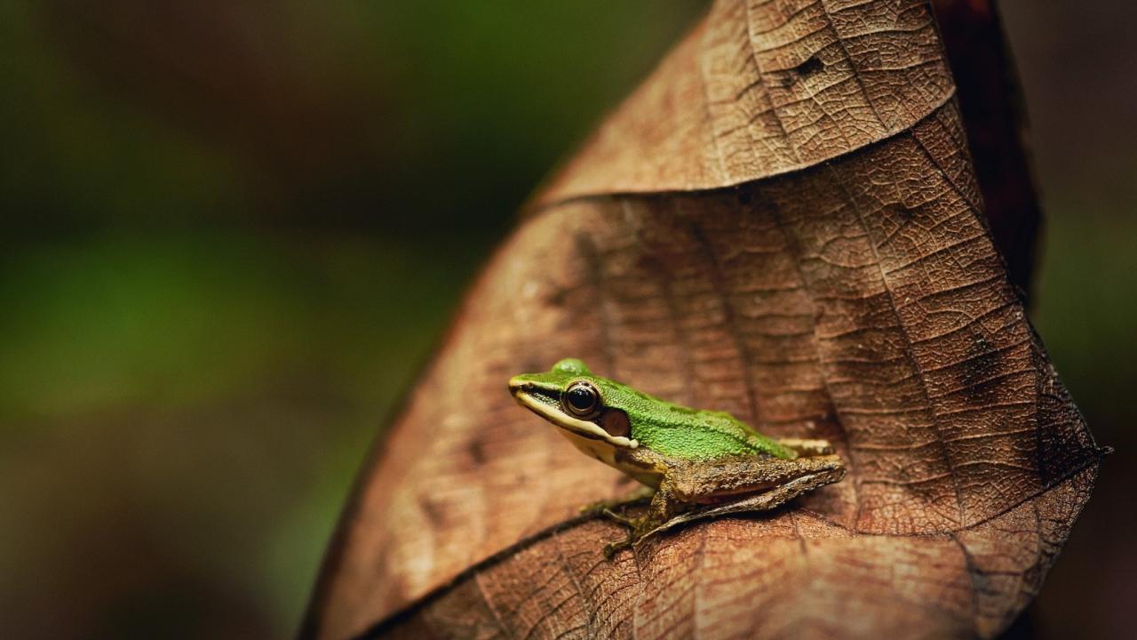 Wallpaper Green Frog on brown leaves
