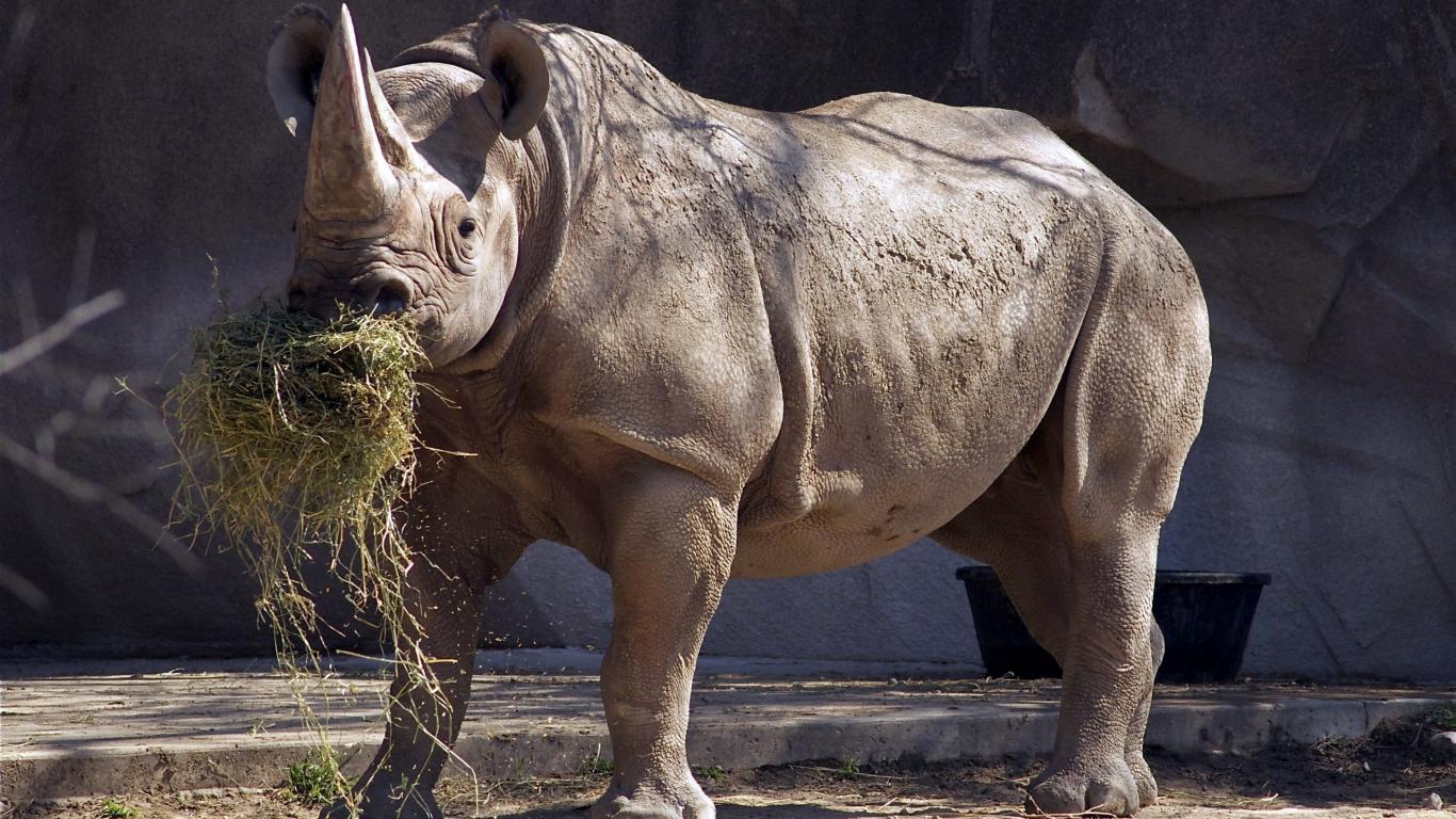 Wallpaper Rhino eating hay