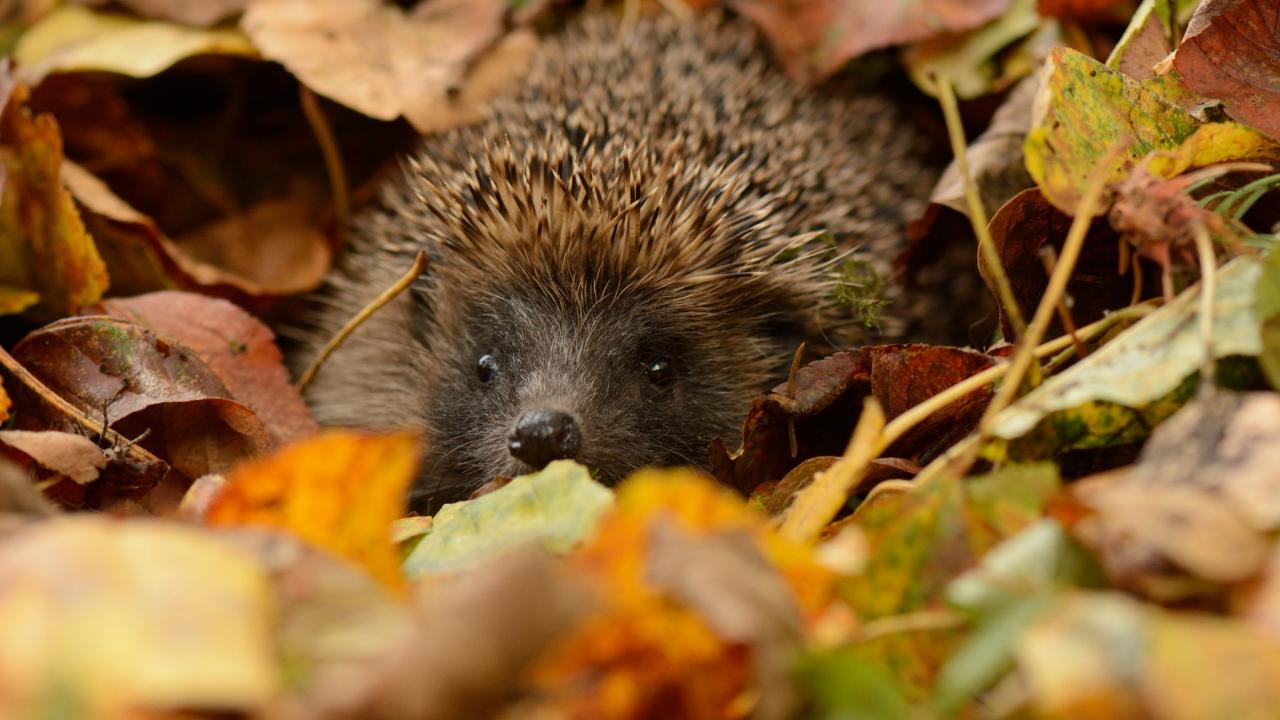 Wallpaper Hedgehog hiding in the leaves