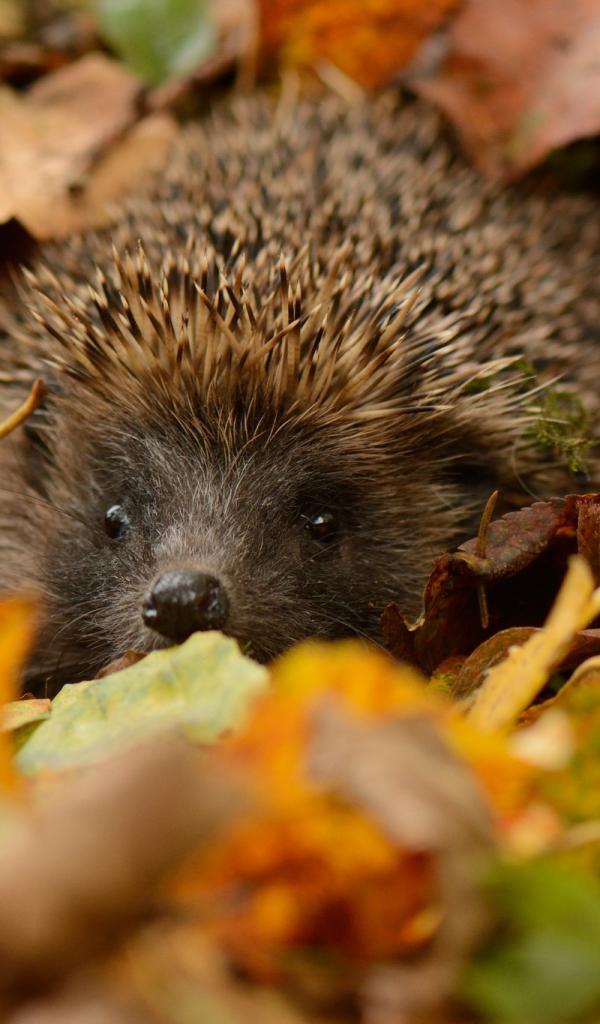 Wallpaper Hedgehog hiding in the leaves