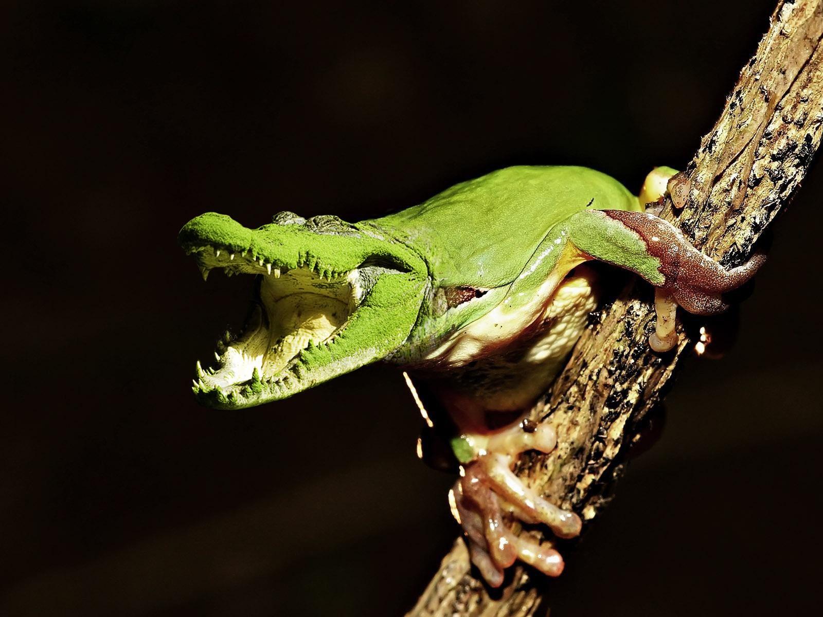 Wallpaper Frog on a branch Crocodile