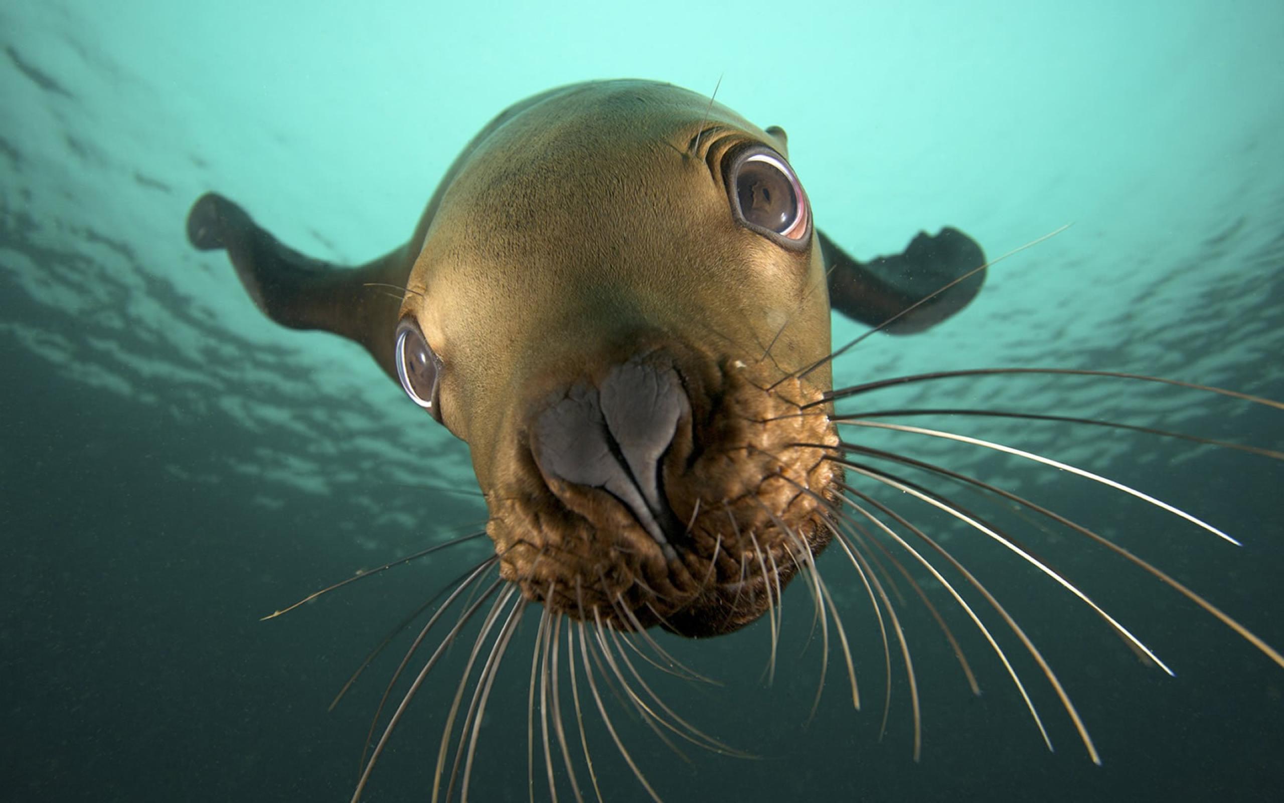 Wallpaper Mustachioed walrus underwater