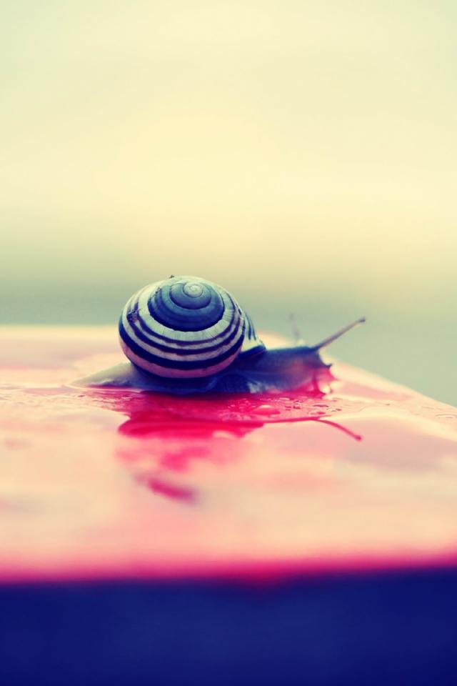 Wallpaper Snail on a wet pink surface