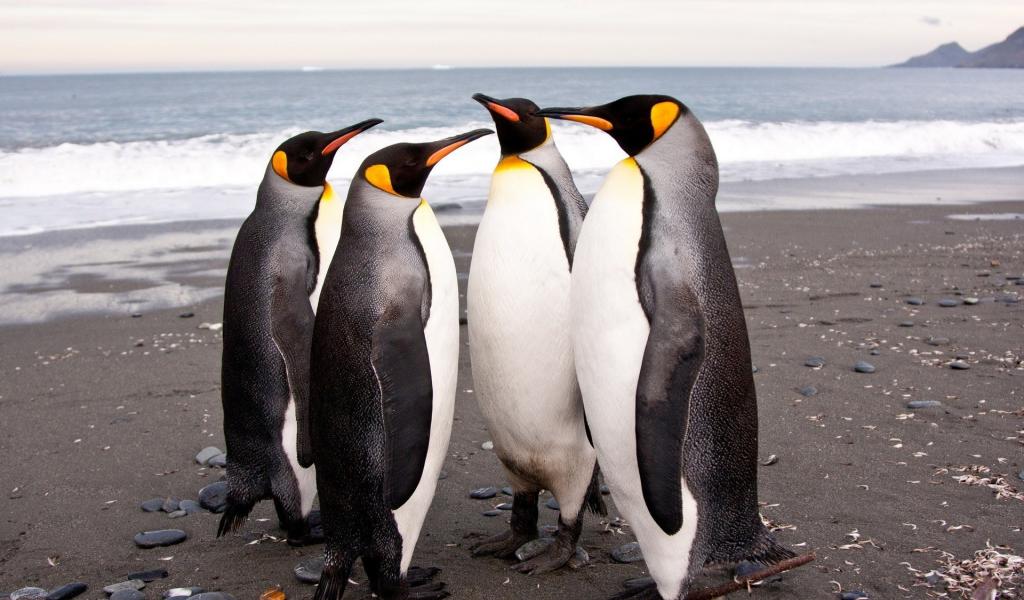 Wallpaper Four penguins on the beach