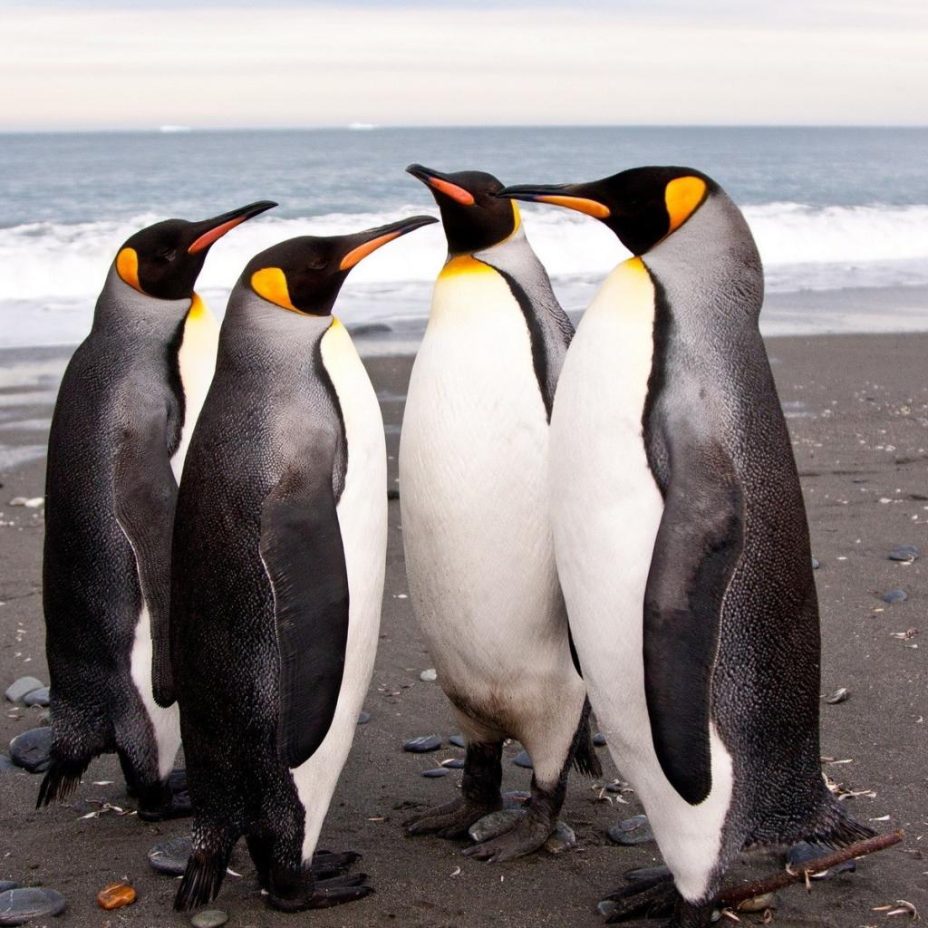 Wallpaper Four penguins on the beach