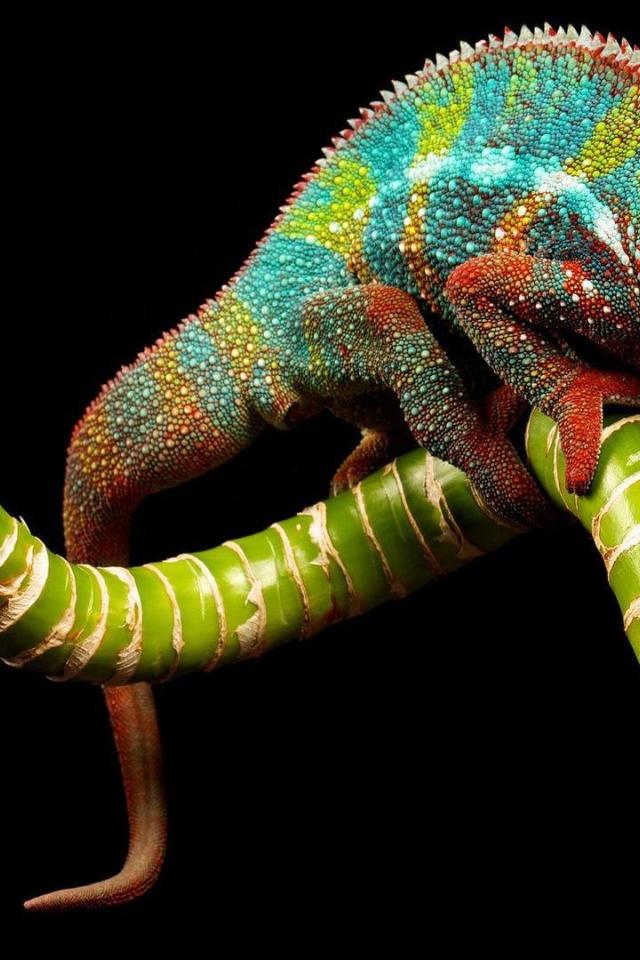 Wallpaper Bright chameleon on a green branch