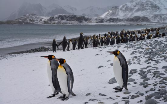 Wallpaper Penguins walking along the beach