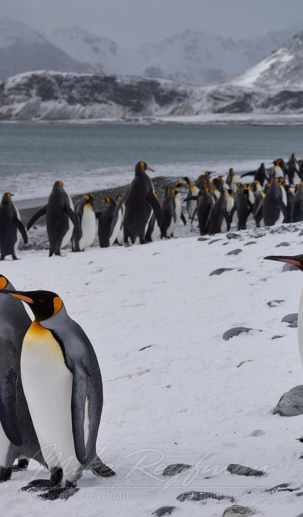Wallpaper Penguins walking along the beach