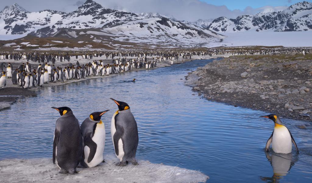 Wallpaper Penguin standing waist-deep in water