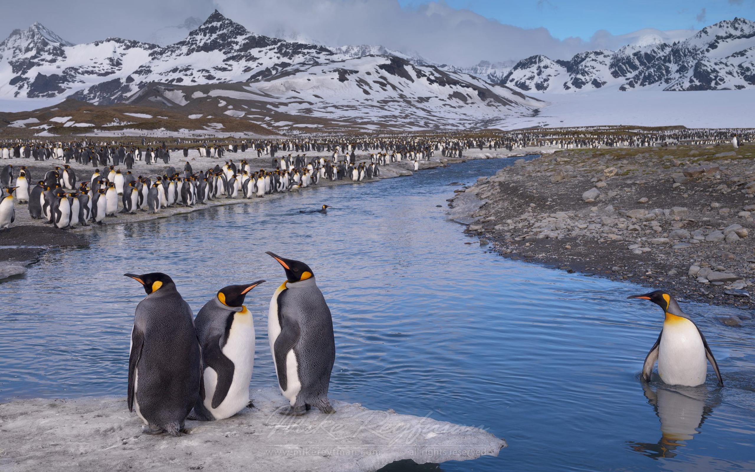 Wallpaper Penguin standing waist-deep in water