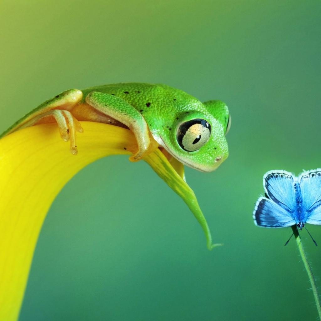 Wallpaper Frog wants to eat a butterfly