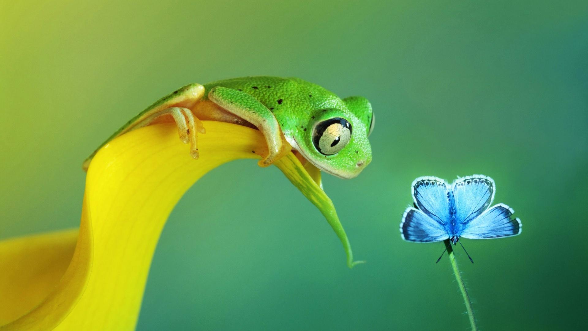 Wallpaper Frog wants to eat a butterfly