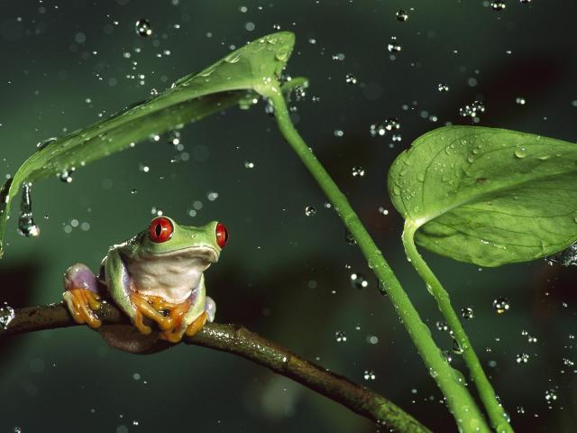 Wallpaper Frog with red eyes in the middle of splashing water