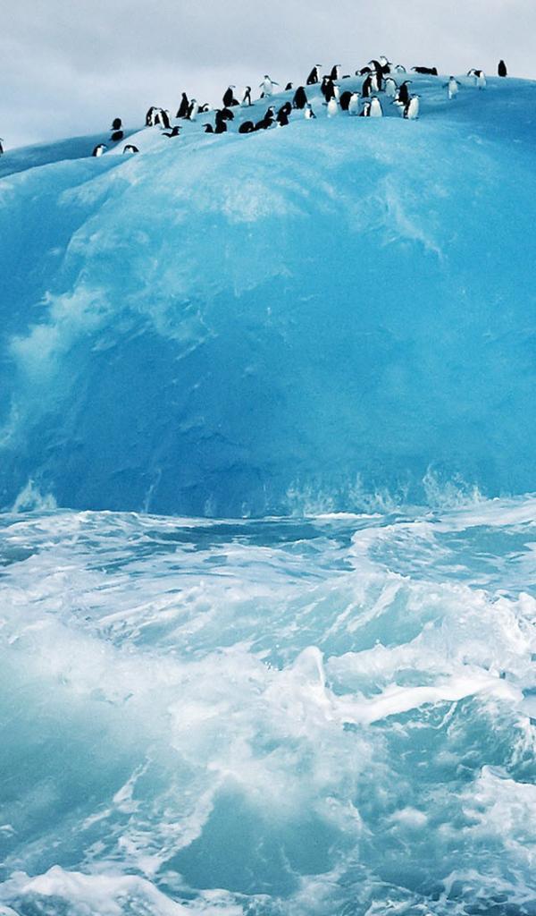Wallpaper Penguins on blue ice iceberg