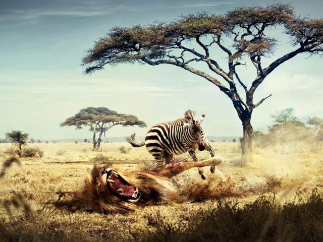 Wallpaper Lion and zebra in Africa