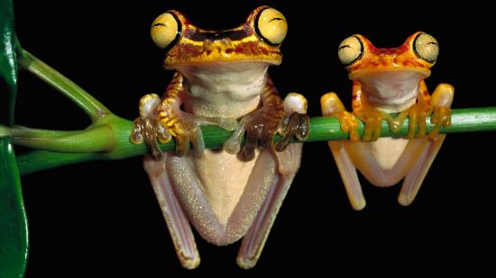 Wallpaper Two frogs hanging on a green stem