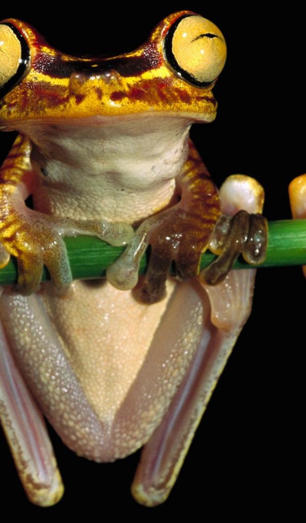 Wallpaper Two frogs hanging on a green stem